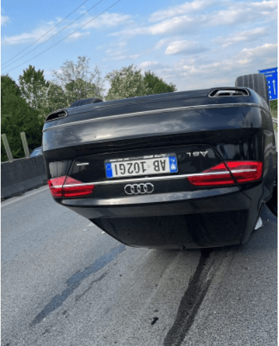 Automjeti tip “Audi A8 L” është përmbysur në autostradën Tiranë-Durrës, por që fatmirësisht nuk ka patur lëndime në njerëz.