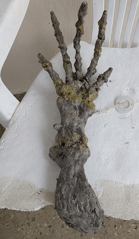 Ndërsa skeleti i dorës duket si i një alieni, është një tipar nga paraardhësit e hershëm të balenave që kanë ecur në tokë rreth 50 milion vjet më parë. Skeleti i dorës u gjet në Ilha Comprida, shteti São Paulo, Brazil, në 20 Nëntor.