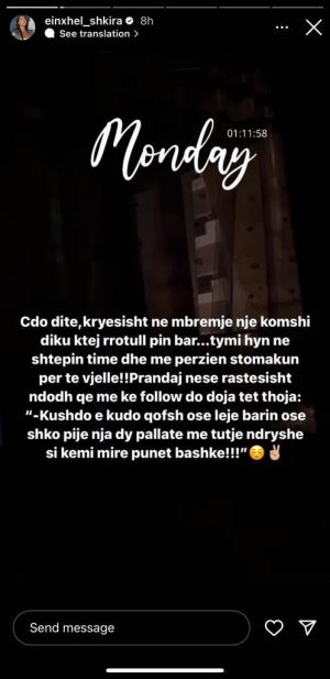Einxhel Shkira është një ndër moderatoret më të komentuara dhe së fundmi ka ndarë një shqetësim në rrjetin social Instagram. Ajo shkruan se një fqinj i saj konsumon lëndë narkotike e për pasojë tymi futet brenda shtëpisë së Einxhel.