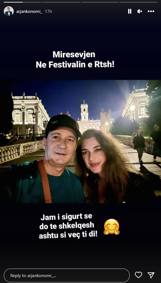 “Mirë se vjen në Festivalin e RTSH! Jam i sigurt se do shkëlqesh ashtu siç veç ti di”, ka shkruar Konomi.