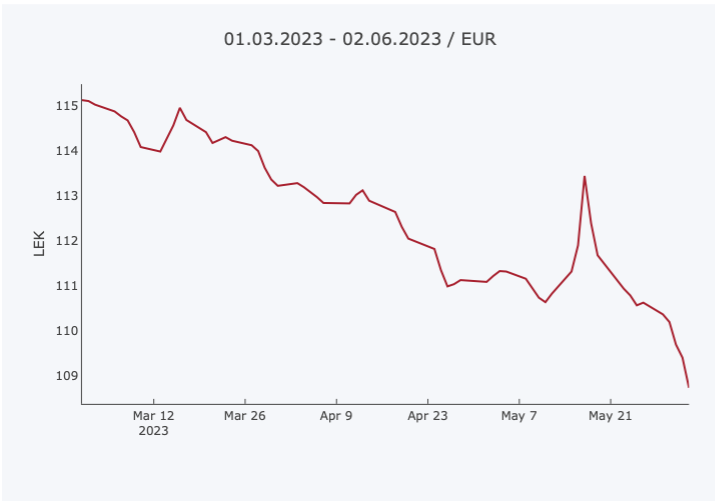 Banka e Shqipërisë raportoi pak më parë se një euro u ble sot me mesatarisht 108.73 lekë dhe u shit mesatarisht me 109.07 lekë duke shënuar një kurs me lekun si asnjëherë më parë që prej fillimit të përdorimit të saj.