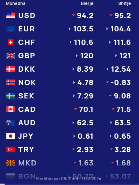 Euro blihet me 103.5 lekë dhe shitet me 104.4 lekë,