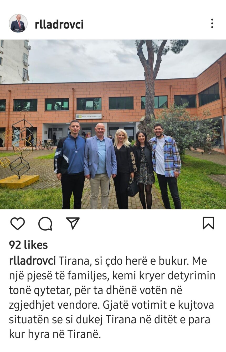 Tirana, si çdo herë e bukur. Me një pjesë të familjes, kemi kryer detyrimin tonë qytetar, për ta dhënë votën në zgjedhjet vendore. Gjatë votimit e kujtova situatën se si dukej Tirana në ditët e para kur hyra në Tiranë.