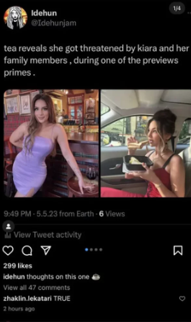 Pas kësaj deklarate ishte Kiara ajo që hodhi poshtë fjalët e Teas, duke thënë se diçka e tillë nuk ka ndodhur dhe se ajo i ka thënë për të marrë vëmendje.