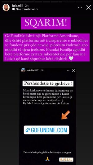 Llogaria “GoFoundMe” e hapur për Luiz Ejllin, ka bërë xhiron e rrjetit ditët e fundit. Pasi takoi këngëtarin “Prime-n” e së shtunës (18 mars), kunati Sokol Tahiri njoftoi në rrjetet sociale një llogari për mbledhje të ardhurash në emër të Luizit.
