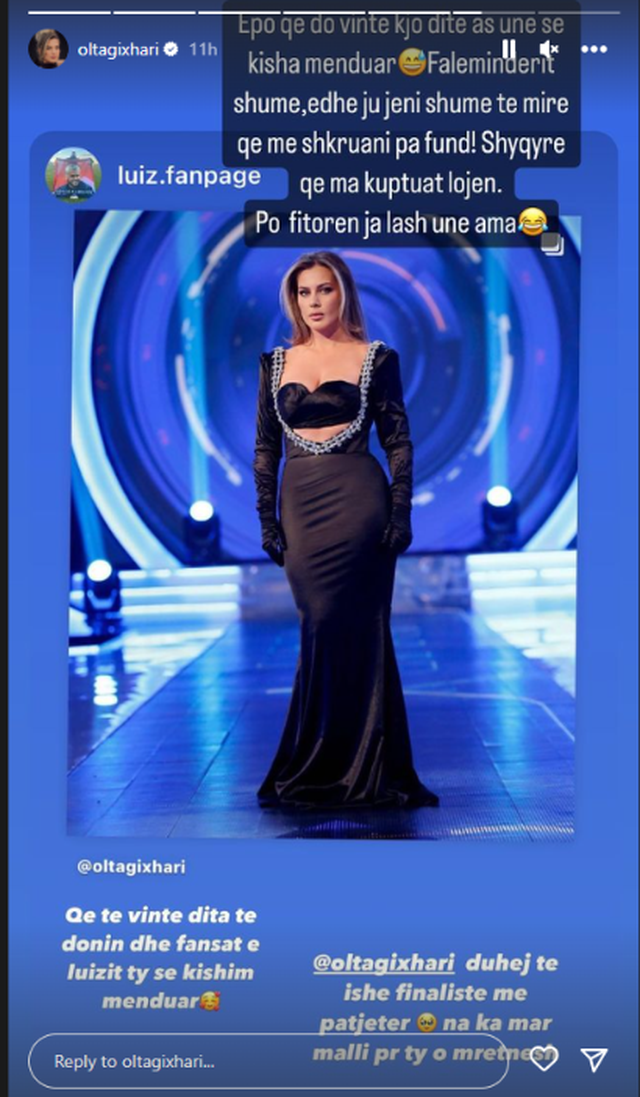 “Që të vinte dita që të donin edhe fansat e Luizit ty se kishim menduar. Dueht të ishe në finale, na ka marrë malli për ty o Mbretëreshë”, shkruajn ata.