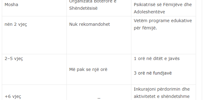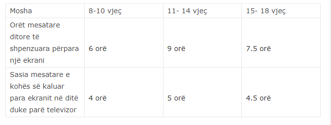 Koha mesatare e qëndrimit para ekranit për fëmijët e moshës shkollore, duhet të jetë: