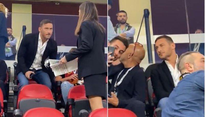 Totti ndodhet në tribunën qendrore, ku do të jetën edhe legjenda dhe njerëz të tjerë mjaft të rëndësishëm të botës së sportit por dhe politikës.
