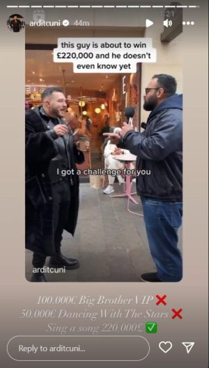 Këtë moment e ka ndarë së fundmi në Instastory-n e tij edhe vetë Arditi, ku duket se ka “thumbuar” pjesëmarrjet e tij të mëparshme në “Big Brother Vip” dhe në “Dancing With The Stars”, ku tek asnjëra nuk arriti të rrëmbente çmimin e madh.