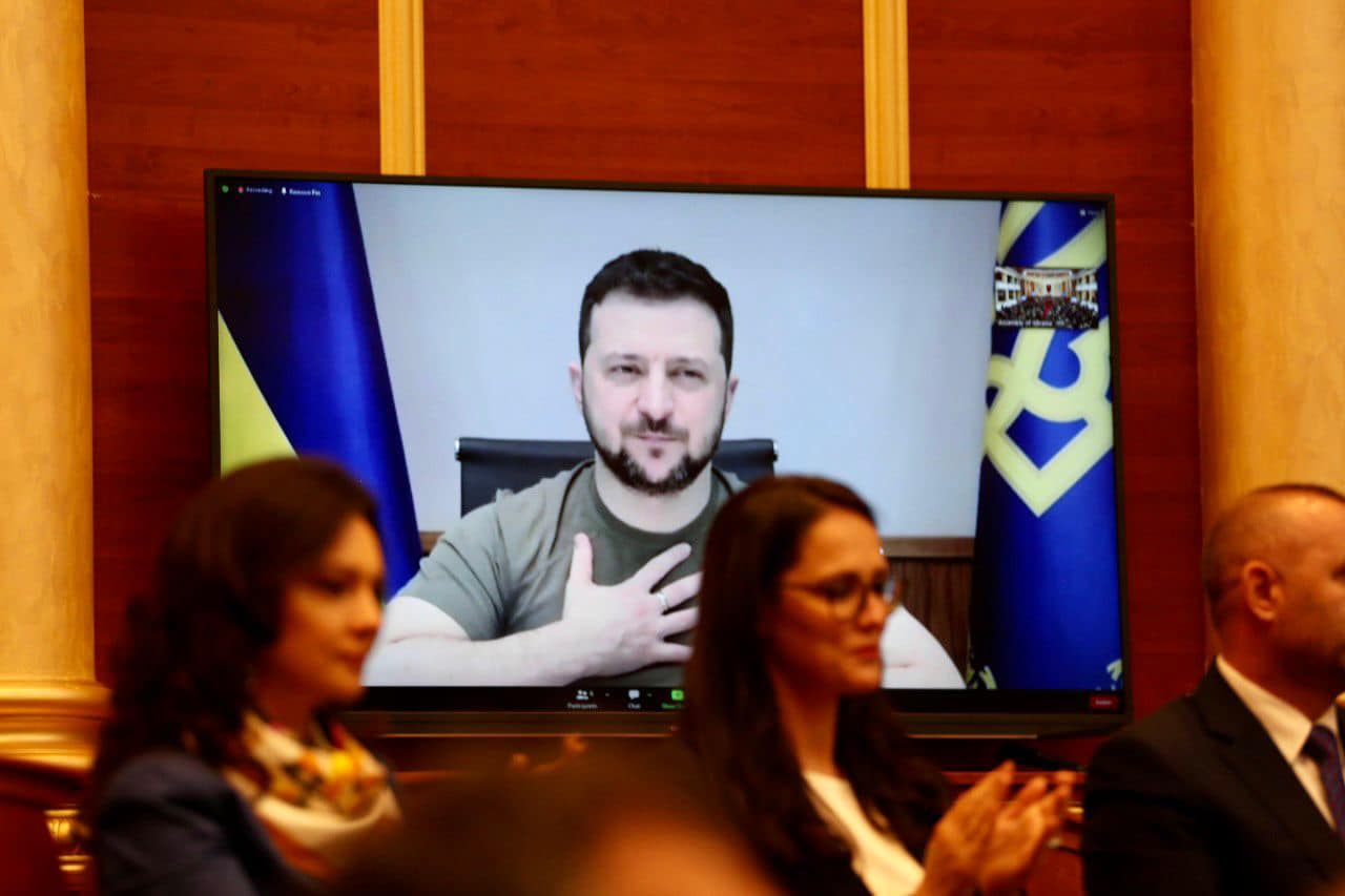 Pasi foli në një videomesazh në parlamentin shqiptar këtë të martë, Presidenti i Ukrainës, Volodymyr Zelensky ka publikuar edhe videon e mesazhit të tij në rrjetet sociale, ndërsa bashkëngjitur ka vlerësuar mbështetjen e Shqipërisë.