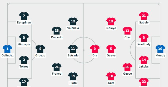 Në krahun tjetër, trajneri Cisse ka vendosur të tijët me rreshtimin 4-2-3-1, me Mendy në portë, Sabaly, Koulibaly, Jakobs dhe Diallo në mbrojtje, Gueye, Ciss, Ndiaye, Gueye dhe Ismaila Sarr në mesfushë, ndërsa sulmi i është besur Boulaye Dias.