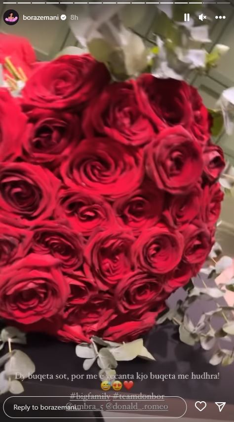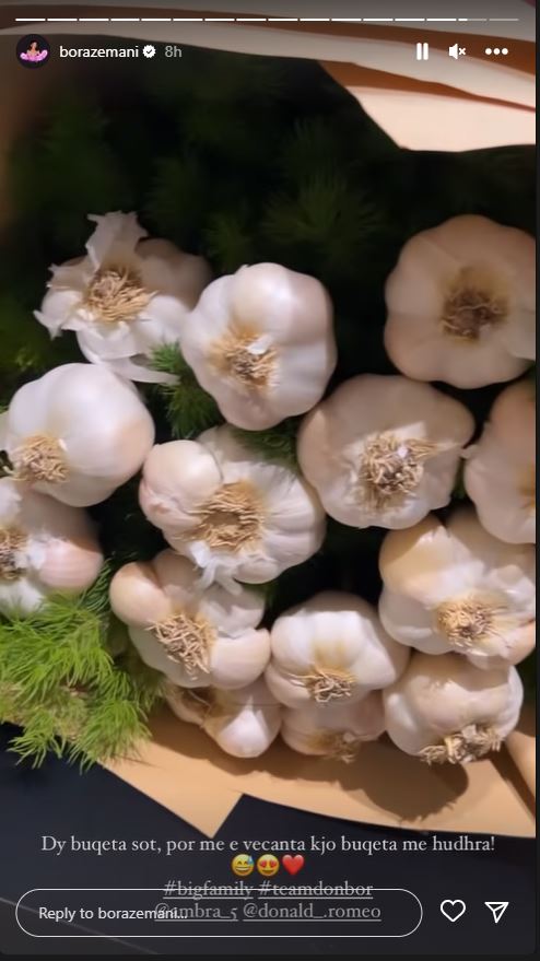 “Dy buqeta sot, por më e veçanta kjo buqeta me hudhra”, ka shkruar Bora përmbi postimin në ‘Instastory’.