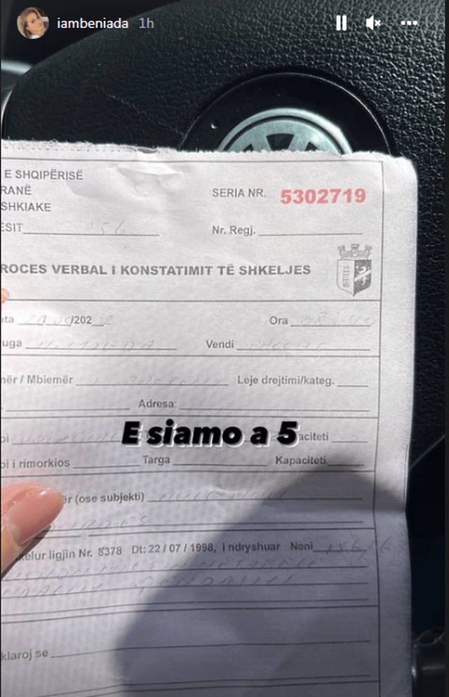 “Doja të jepja një mesazh për të gjithë policët e Tiranës. Do vendos foton e targës së makinës time në Instagram, ju lutem shumë mos më bëni më gjobë. Kam marrë katër gjoba dhe i kam paguar të gjitha. Na keni vënë një tjetër gjobë, te një vend që makina e di se nuk lejohej, por nuk jepte bezdi se aty përpara kishte makina të tjera që jepnin bezdi. E imja është e vockël dhe nuk jep bezdi dhe nuk kam vend ku ta fus këtu te shtëpia, nuk kam garazh. Ju lutem mos më vini më gjoba. Faleminderit. Ngela duke marrë gjoba”, thotë Beniada.