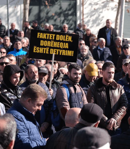 “Rama ik, Rama ik!”, janë disa nga thirrjet e protestuesve në tubim, ndërsa në një prej pankartave shkruhet; “Faktet dolën, dorëheqja detyrim!”
