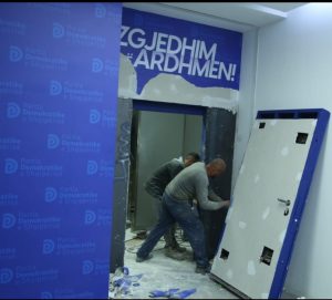 Përpos dyerve të blinduara, janë hequr edhe logot dhe sloganet e vendosura nga ish-kryetari Basha.