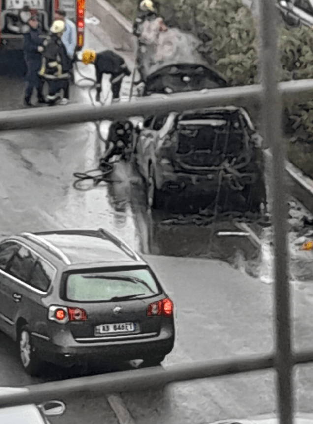 Foto/ Merr flakë makina në Selitë, zjarrfiksja në vendngjarje