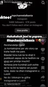 Së fundmi, mikesha e tij ka reaguar në profilin e saj Instagram ku ka treguar versionin e saj të ngjarjeve dhe madje ka publikuar bisedat me televizionin të cilat mund ti shihni më poshtë: