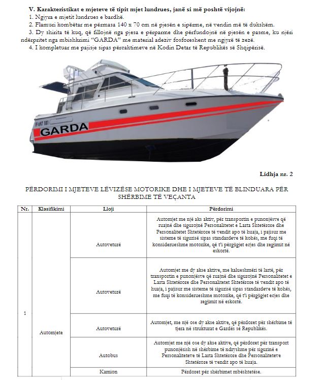 Mjeti lundrues do të karakterizohet nga ngjyra e bardhë, flamuri kombëtar në pjesën e sipërme në vendin më të dukshëm, dhe dy shirita të kuq, ku njëri ndërpritet me mbishkrimin Garda.
