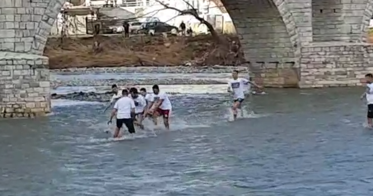 7 të rinj nga të gjitha lagjet e qytetit të Beratit u hodhën në ujin e ftohtë të lumit për të pritur kryqin. Kryqi u kap nga 26-vjeçari Pirenc Zharra,banues në lagjen “Goricë” në Berat.