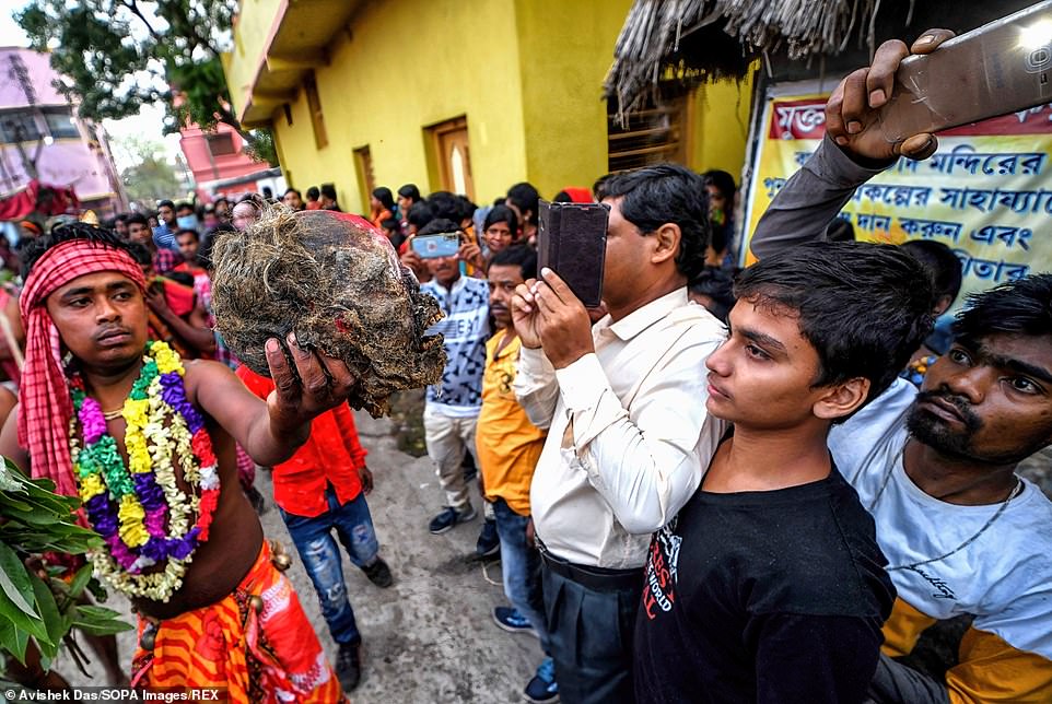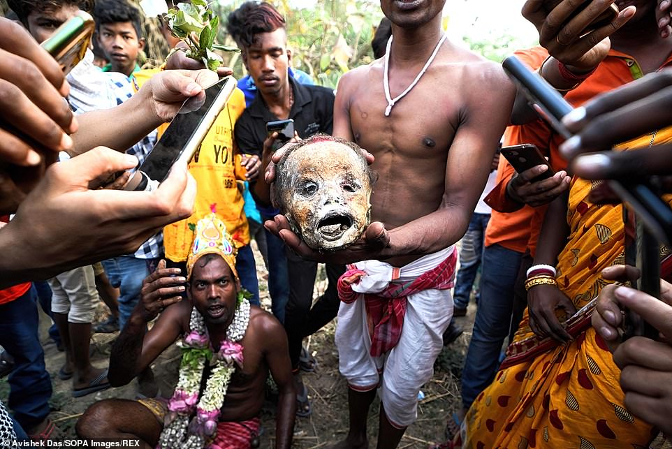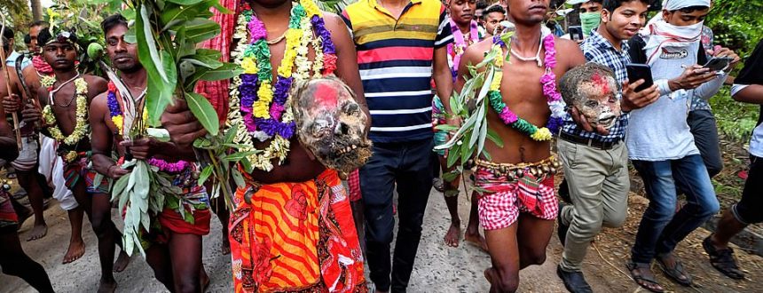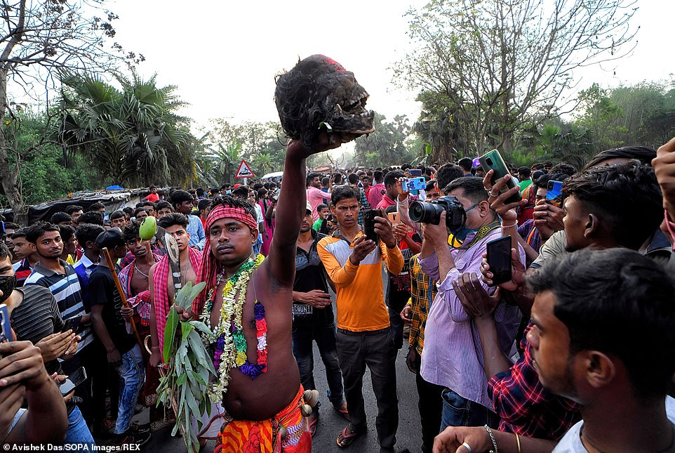 Një festival ndryshe nga sa jemi mësuar mbahet në Indi, ku adhuruesit që mbajnë një kafkë dhe kërcejnë përgjatë rrugëve të Bardhaman, si pjesë e një ceremonie që kënaq një hyjni Hindu. Fotografitë e pabesueshme tregojnë një ritual të pazakontë në të cilin njerëzit mbajnë kafka nëpër rrugë, duke tërhequr shumë vëmendje.