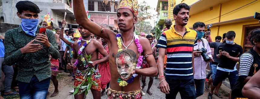 Festa një javore e Gajan festohet kryesisht në Bengalin Perëndimor dhe është e lidhur me hyjnitë hindu të tilla si Shiva. Banorët e qytetit dalin në rrugë të veshur me ngjyra të ndezura, dhe mbajnë disa kafka në duar. Ata qëndrojnë në anë të rrugës, duke regjistruar pamjet filmike me anë të celularëve.