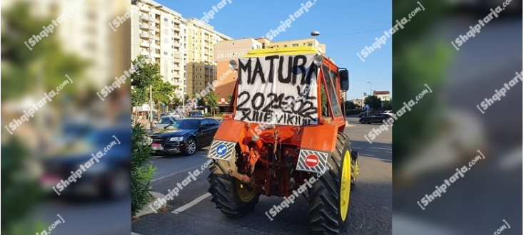 Ndryshe nga bashkëmoshatarët e tjerë, i riu ka zgjedhur një mjet bujqësor, zetor për të festuar mbrëmjen e maturës.