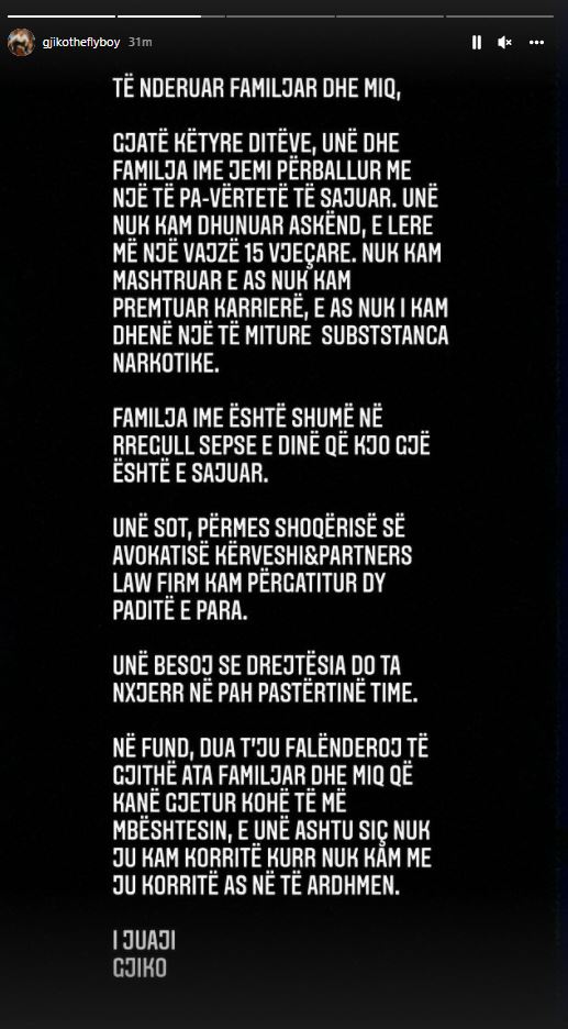 “Gjatë këtyre ditëve, unë dhe familja ime jemi duke u përballur me një të pa-vërtetë të sajuar“, ka shkruar ndër të tjera Gjiko./Priza.al