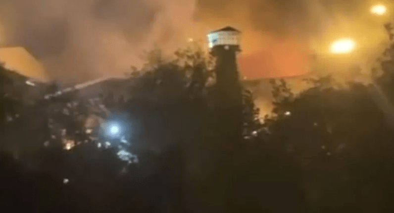 Videot e shpërndara në internet treguan flakë dhe tym dhe mund të dëgjoheshin të shtëna armësh dhe shpërthime.