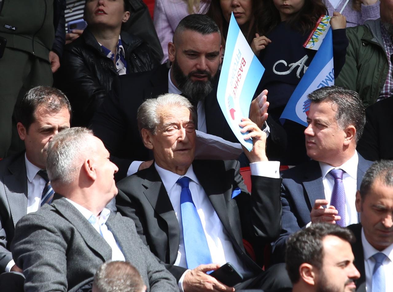 Ndërkohë që priste që kandidatët për kryetarë bashkish të mbaronin, duket se ish-kryeministri Sali Berisha është bezdisur nga dielli.