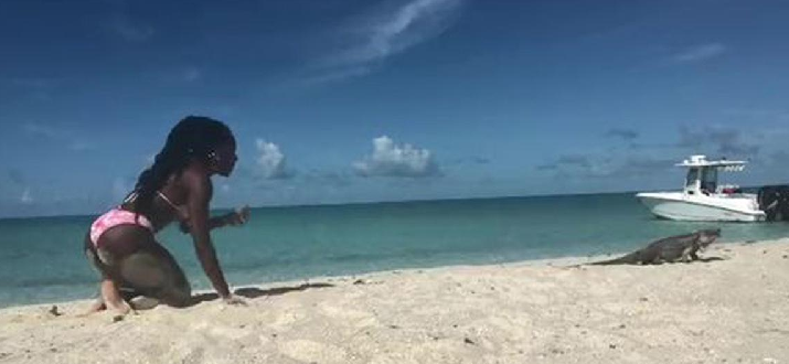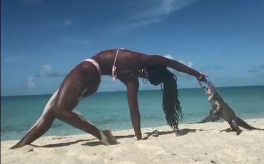 Një përdorues i rrjeteve sociale publikoi momentet qesharake kur instruktorja e meditimit joga u kafshua nga një iguana e egërsuar, teksa praktikonte paqësisht në bregun e detit.
