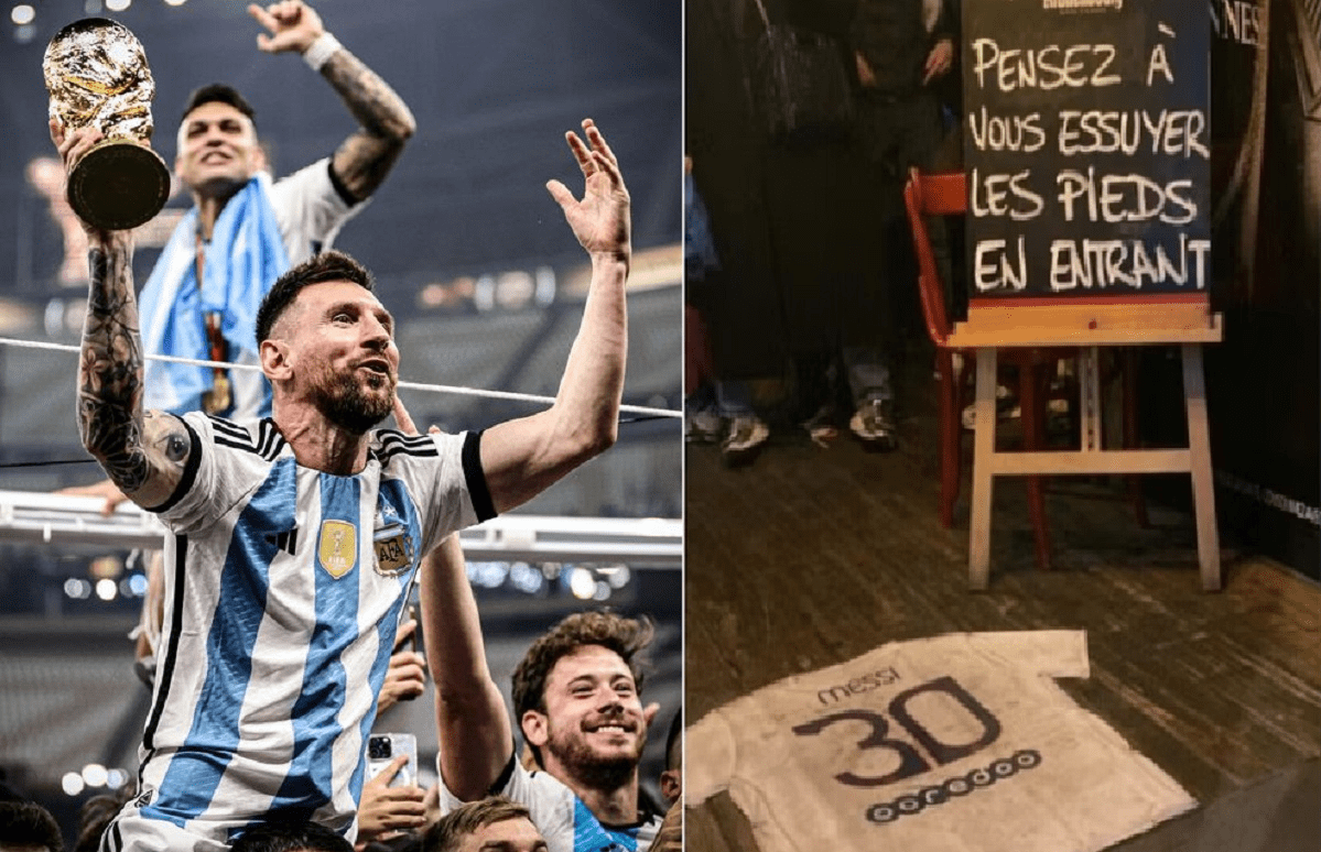 Në të vërtetë, fanella e Lionel Messit (ajo e PSG) u pa në hyrje të një lokali si rrogoz, me një mesazh të veçantë sipër: “Mos harroni të fshini këmbët kur të hyni”. Një mesazh që nuk do t’i pëlqejë aspak Argjentinës, e lëre më tifozëve të Paris Saint-Germain, edhe nëse “La Pulga” i ka privuar vendit të tyre yllin e tretë.