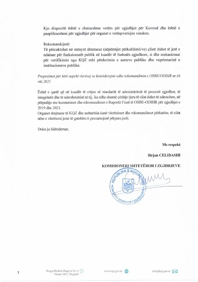 Burime për median bëjnë me dije se në shkresë përfshihen ndër të tjera dhe rregullat e financimit të fushatës zgjedhore.
