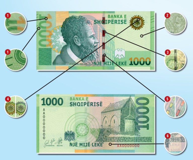 Kartëmonedha 10,000 lekë mbart si tematikë simbolet kombëtare pasi shoqërohet me portretin e Aleksandër Stavër Drenova (Asdreni), poetit tonë të Rilindjes, autor i tekstit të “Himnit Kombëtar” të shqiptarëve. Ndërsa sa i përket kartëmonedhës 1000 lekëshe vjen me një dizajn të rifreskuar, duke pësuar ndryshime që lidhen me të gjitha elementët në tërësi, ndryshon ngjyrë në kënde të ndryshme shikimi, si dhe shiritin e ndritshëm në pjesën e pasme.