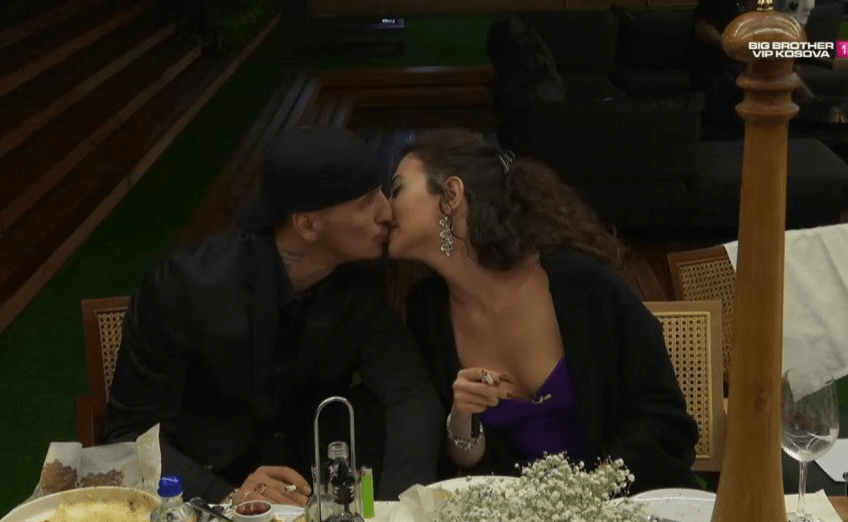 Kësisoj edhe mbrëmë dyshja u panë të shkëmbenin puthje në prani të banorëve të tjerë në tryezë.
