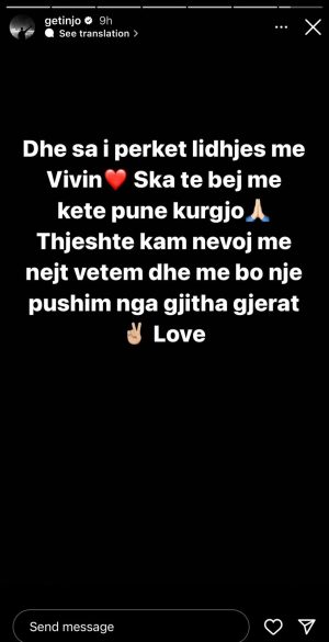 “Përshëndetje njerëz të dashur, uroj që jeni mirë krejt. Unë do të largohem pak nga rrjetet sociale për arsye personale! Kam pak një fazë depresioni dhe më duhet të jem pak larg këtyre aplikacioneve! Ju dua. Qëndroni pozitivë”, ka shkruar Getinjo në Instastory.