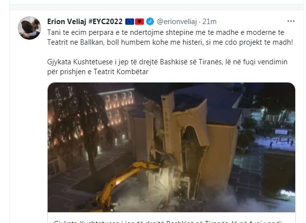 Tani të ecim përpara e të ndërtojmë shtëpinë më të madhe e moderne të Teatrit ne Ballkan, boll humbëm kohe me histeri, si me çdo projekt te madh! Gjykata Kushtetuese i jep të drejtë Bashkisë së Tiranës, lë në fuqi vendimin për prishjen e Teatrit Kombëtar.