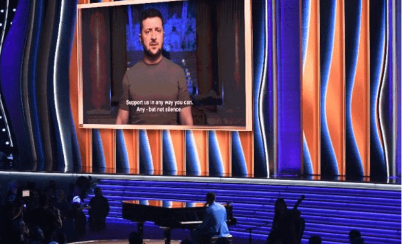 “Ne po luftojmë Rusinë, e cila sjell heshtje të tmerrshme me bombat e saj, heshtjen e vdekur”, tha Zelenskyy. “Mbusheni heshtjen me muzikën tuaj. Mbusheni sot për të treguar historinë tonë.”