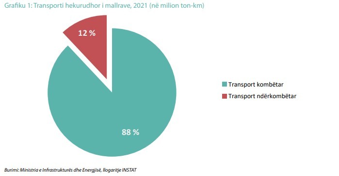 Transporti hekurudhor i mallrave kryhet në distanca 0-49 km dhe 50-150 km. Volumi i mallrave që transportohet sipas distancës 50-150 km është 66,5 mijë ton, ose 88,3 % e mallrave të transportuara me transport hekurudhor. Transporti Hekurudhor i mallrave Transporti hekurudhor i mallrave rezultoi 25,11 milionë ton-km në vitin 2021, i cili krahasuar me vitin 2020 paraqitet me rënie prej 3,5 %.