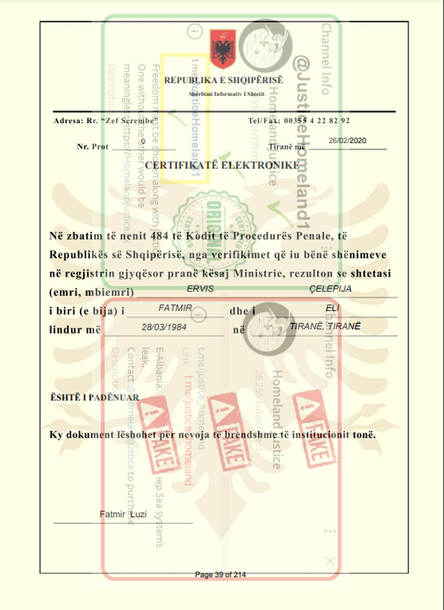 Homeland Justice publikojnë certifikatat e sigurisë së punonjësve të Ministrisë së Brendshme. Në rrjetin social “Telegram”, “Homeland justice” ka nxjerrë 214 faqe me dokumente, krahas të cilave shkruajnë: “Bari është gjithmonë më i gjelbër në anën e terroristëve! O ju që kërkoni nga historia dhe historia kriminale e çdo shqiptari! Keni bërë të njëjtën gjë edhe për ata terroristë komunistë?”