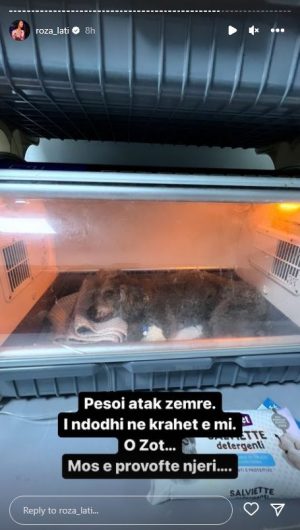 Në një tjetër postim Roza ka ndarë edhe fotot e fundit të qenit të saj, krahas së cilave shkruan: “Ditët tona të fundit… Të shkrepura në foto… s’të kthej dot mbrapsht i vogli im… Kam 2 ditë shtrëngoj bluzen tënde, qaforen tënde…”