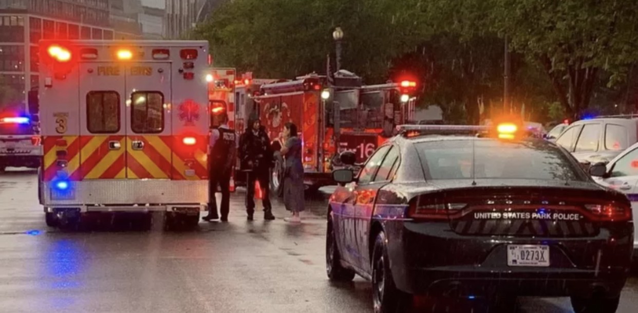 Dy burrat dhe dy gratë ishin në Lafayette Park në Uashington DC gjatë një stuhie të dhunshme kur u goditën, thanë zyrtarët e zjarrfikësve.