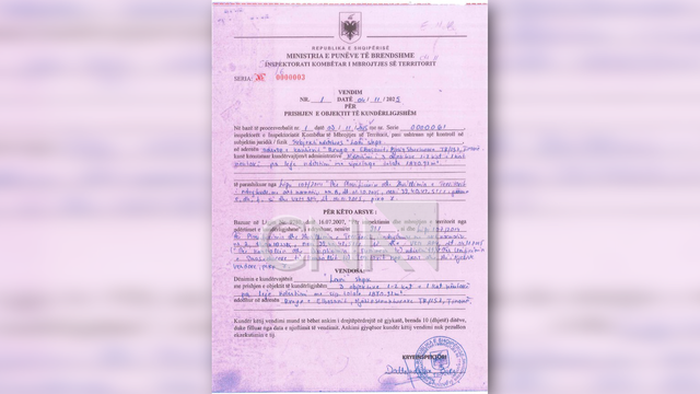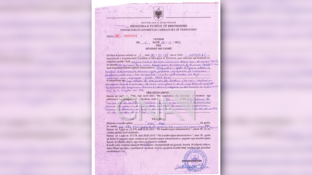 Dokumentet themelet datën 3 dhe 4 nëntor 2025, në të njëjtën ditë, IKMT gjobit ndëruesit e kompanive “Lani sh.pk” dhe po të një ditë të vetme që nuk shkatërrohet edhe tri vila, një herë me nuk kur dinamitet, por iu përgjigj lënda eksplozive, mori fadromat për t’i rrëzuar ngaet.