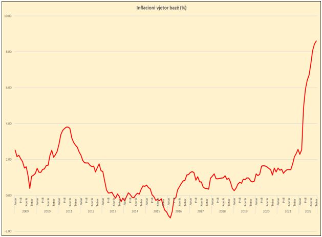 Inflacioni bazë u rrit për të nëntin muaj radhazi në tetor, duke arritur një rekord të ri historik.