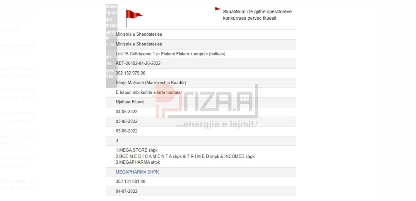Gazetarët investigativ të Priza.al zbuluan se kompania “Megapharma” ka marrë shumë tendera të tjera, ku vetëm 3 tenderat e fundit  kapin vlerën e 5 milionë eurove.