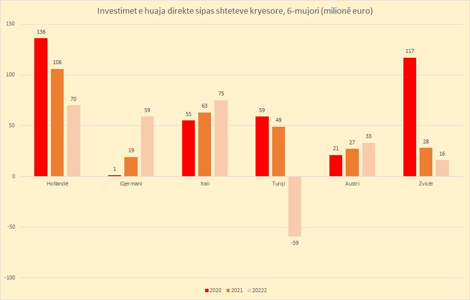 Renditja e investitorëve të huaj për 6-mujorin vijon me Austrinë, me 33 milionë euro investimeve të reja, Kosovën, me 29 milionë euro dhe SHBA, me 27 milionë euro.