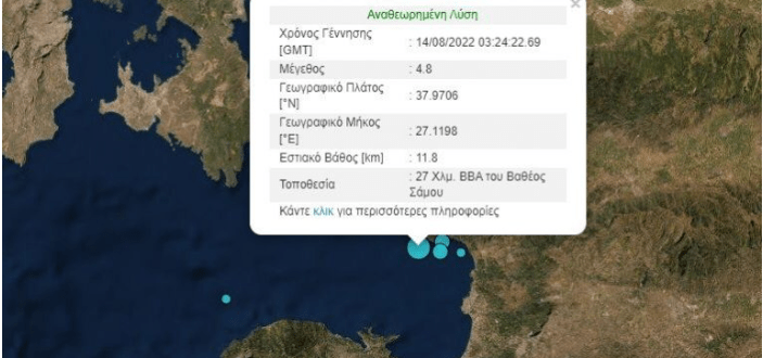 Ishulli Samos në Greqi është goditur mëngjesin e sotëm nga një tërmeti me magnitudë 4.8 ballë të shkallës rihter. Sipas mediave greke tërmeti është regjistruar në orën 07:24 të mëngjesit të sotëm.