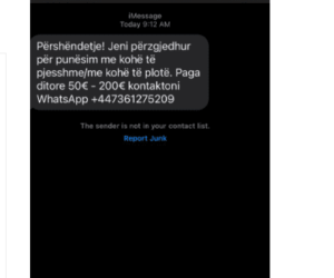 Nëse tek ju ka ardhur një mesazh në telefonin tuaj, ku ju ofrohet një vend pune dhe paga është relativisht e lartë, 50-200 euro në ditë.