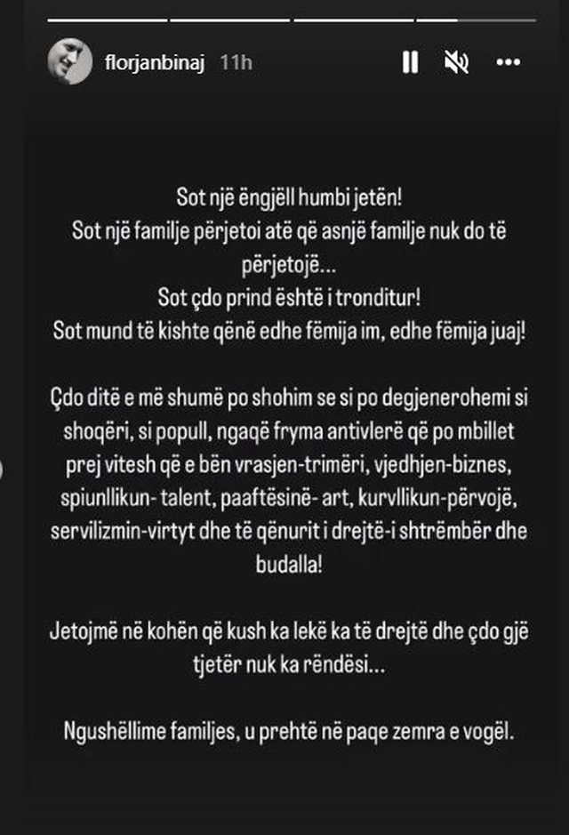 Një ndër të fundit ishte mesazhi prekës i aktorit Florjan Binaj me anë të cilit shpreh edhe ngushëllime për familjarët, në postim ai shkruan :