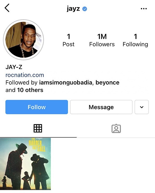 Reperi 51-vjeçar (i lindur me emrin e vërtetë Shawn Corey Carter) iu bashkua Instagramit të martën dhe tashmë ka grumbulluar mbi një milion ndjekës, ndërsa ndjek në Instagram vetëm një llogari, atë të Beyonces, me të cilën është i martuar që nga viti 2008 dhe ka tre fëmijë me të.