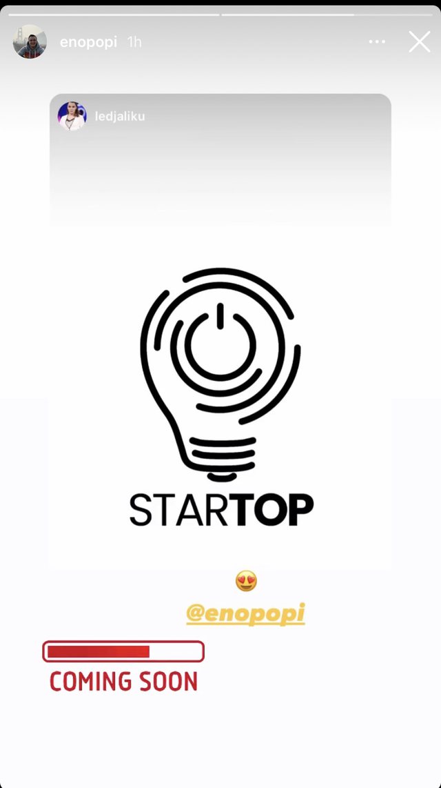 Eno po ashtu ka zbuluar emrin e programit, “StarTop”, e ngjashme me “startup”, në linjë me atë çfarë dimë deri tani nga emisioni. Po ashtu togfjalëshi “coming soon” tregon që projekti do të nisë së shpejti, ndërsa pritet që gazetari të zbulojë më shumë detaje në ditët në vijim.